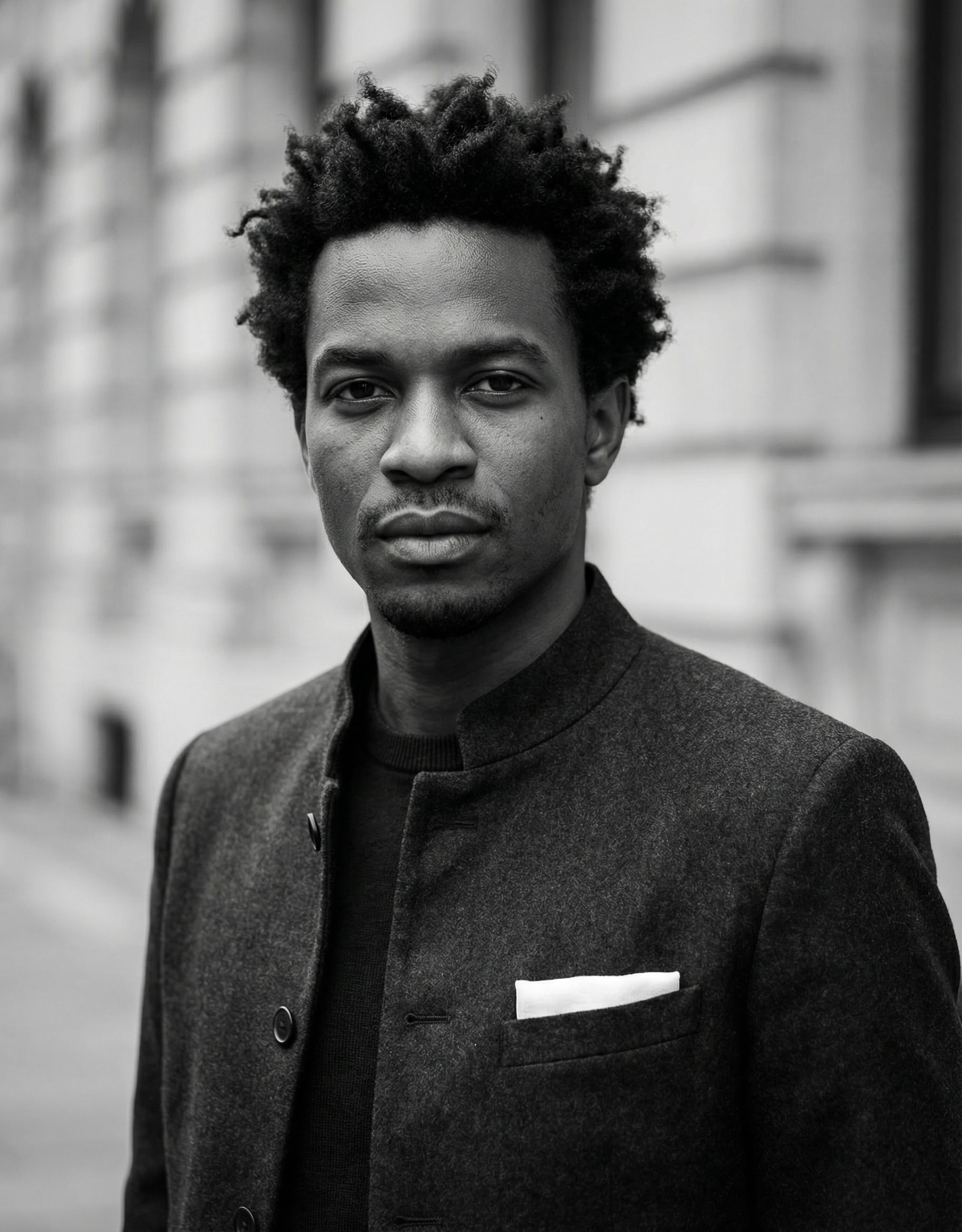 Classic Menswear is a black-and-white editorial portrait built around a specific aesthetic — high-quality wool or tweed jacket, Nehru collar, fine pocket square, and the kind of thoughtful, confident expression that belongs in a tailoring campaign.