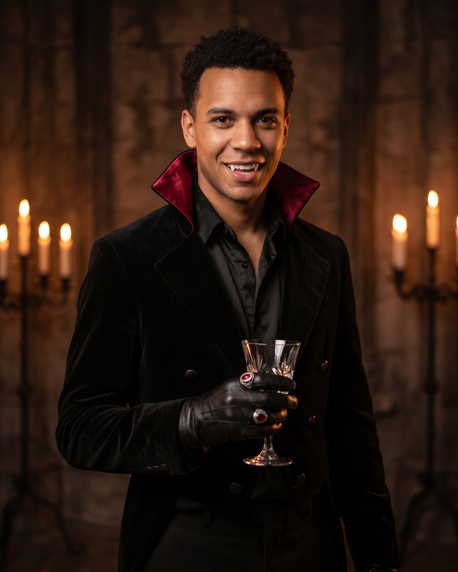 The output is the kind of image that would appear in a Halloween-themed fashion feature — dramatic lighting, intentional styling, striking composition. It works for costumes ranging from classic horror to avant-garde creative.