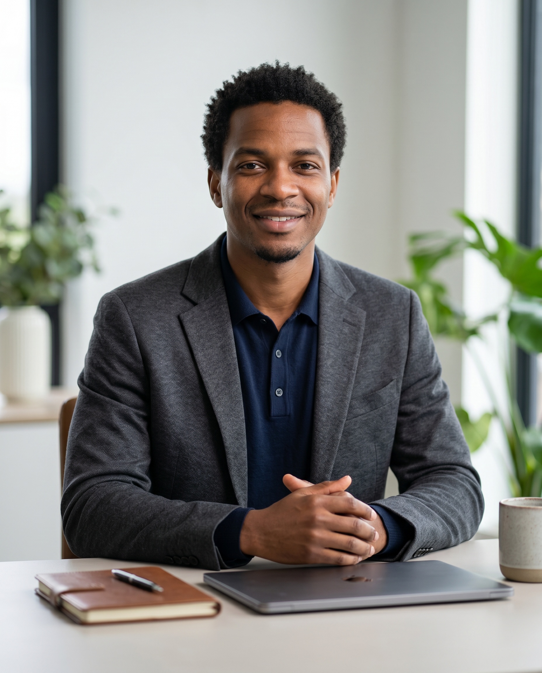 A clean desk portrait for people who want quiet competence and style.